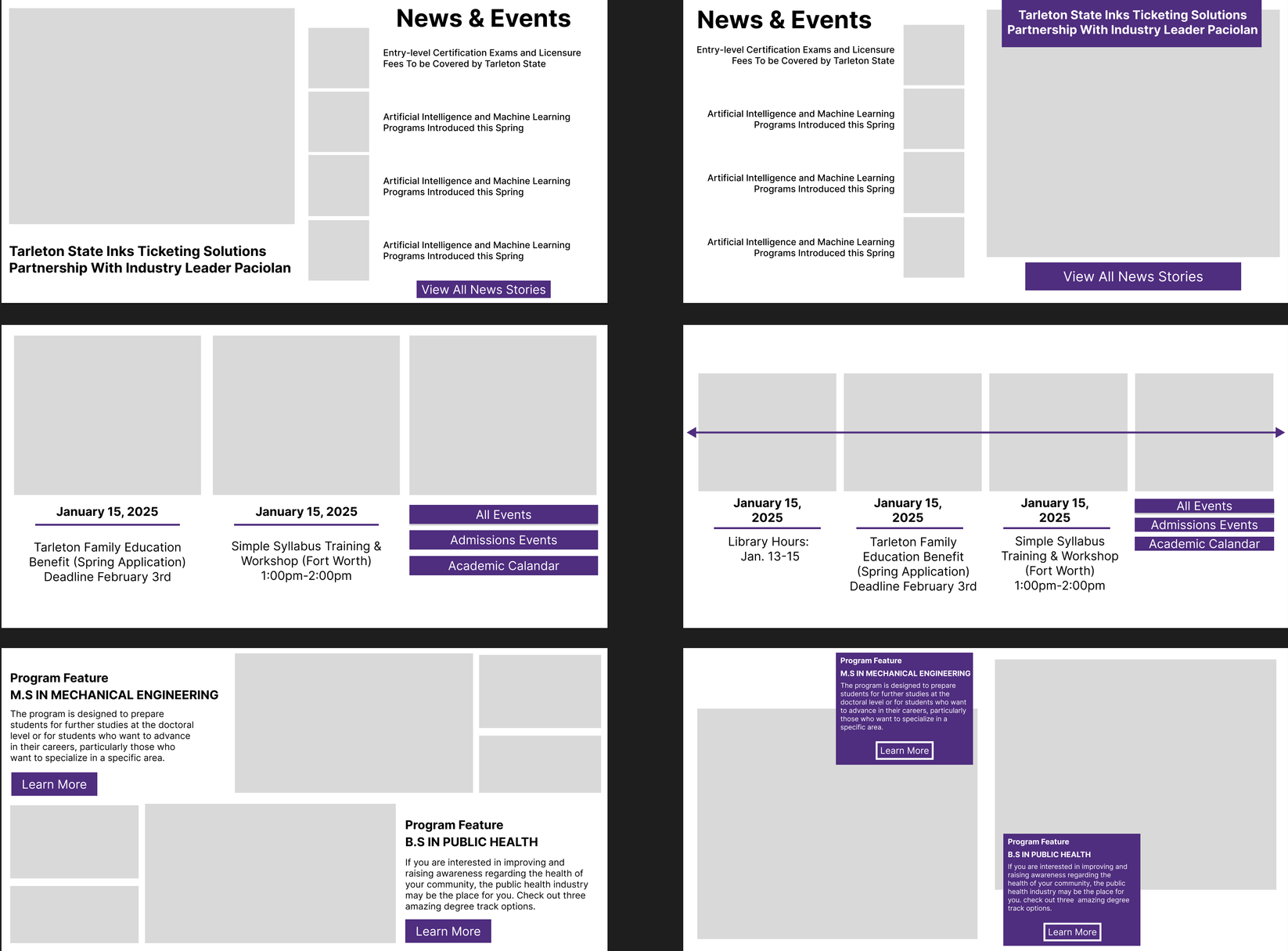 Mobile App Designs Tarleton State Website Designs Tarleton State University Iconography Tarleton State University Visual Communication Tarleton State Degree Feature Block Wireframes